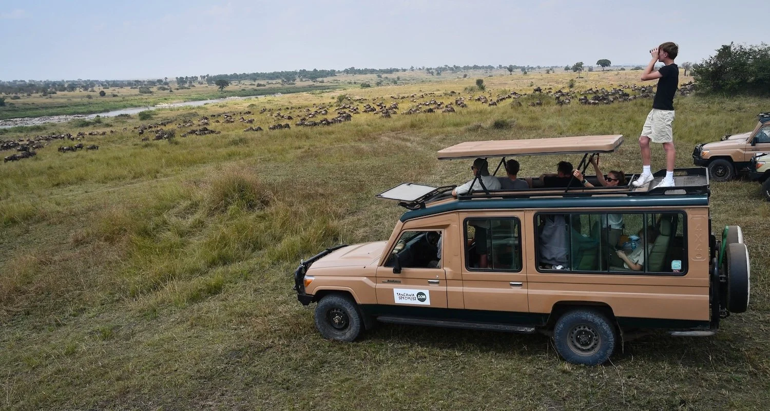 On safari in Tanzania. Watching the Mara River Crossing of “the Great Migration.”