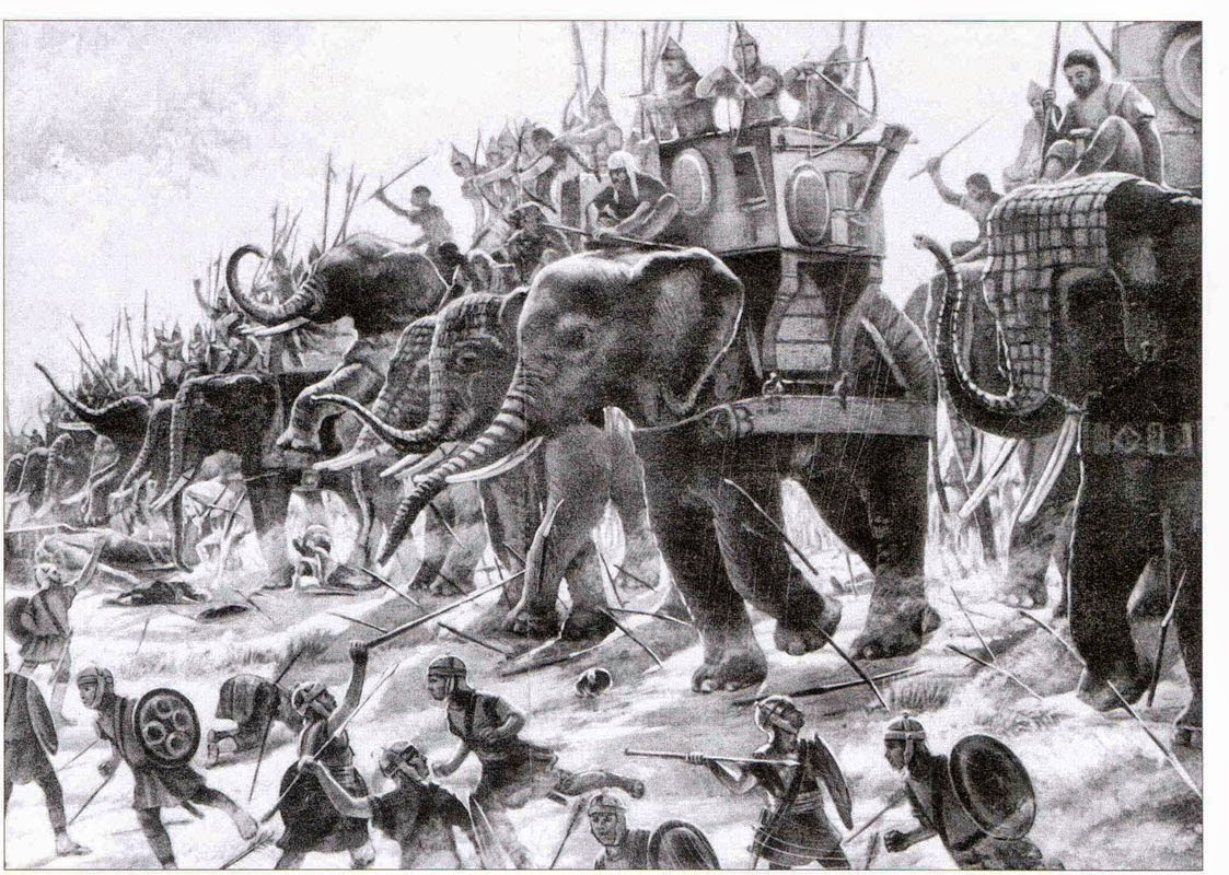 Carthaginian war elephants in battle. Image from here.