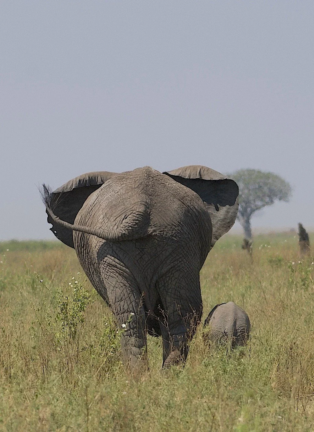 Mom and baby elephant trundling off in the central Serengeti.