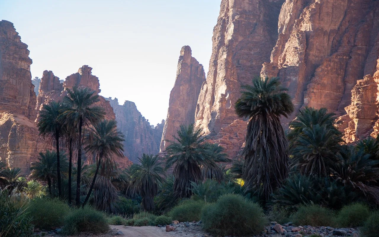 What makes Al-Disah truly wondrous isn't just the stone—it’s the life within it. Between the rocky spires, you'll find a lush oasis thriving on the canyon floor:
