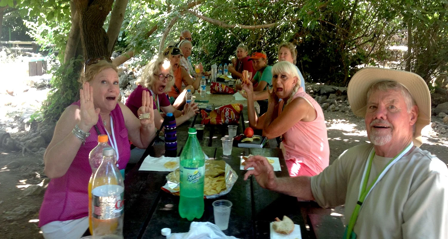 Muster your mustard! Picnic at the park in Banias (biblical Caesarea-Philippi), Israel-Palestine.
