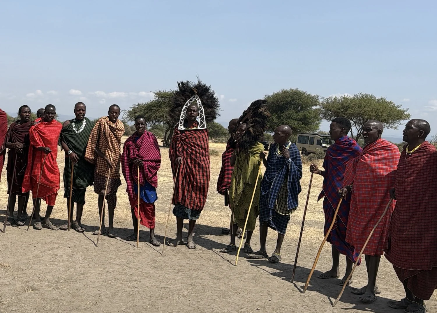 Maasai men in traditional wraps.