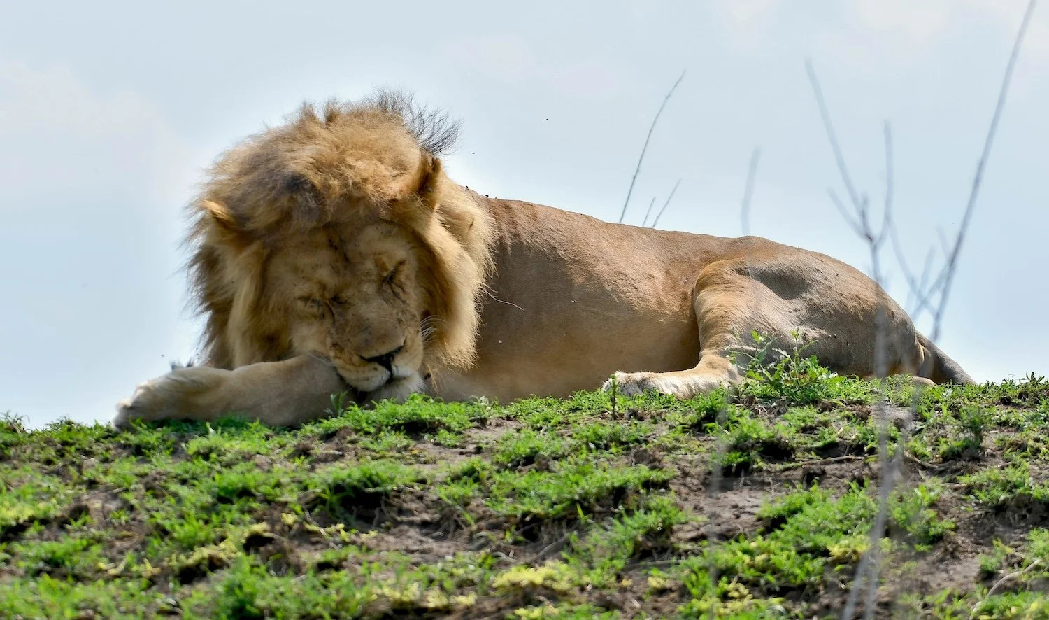 A male lion practicing his "strategic survival tactic" on the Serengeti.