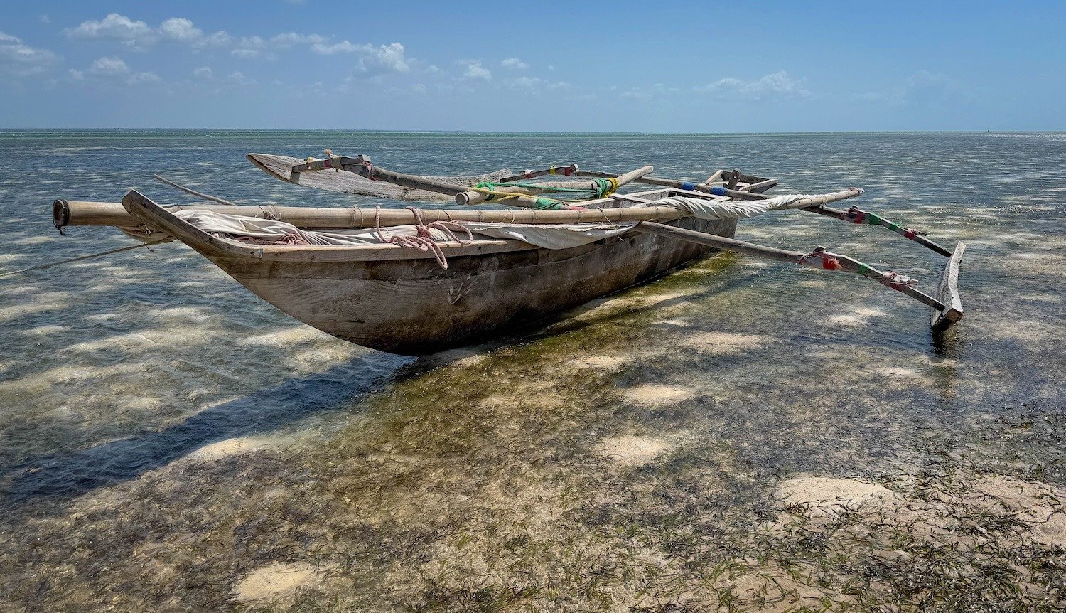 It’s currently low tide on the east coast of Zanzibar, and this traditional craft isn't going anywhere soon.