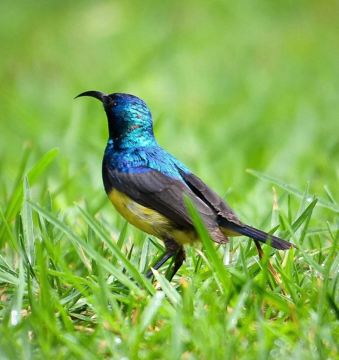 Beyond its beauty, the sunbird is a precision-engineered feeder. Its needle-like curved beak and specialized tubular tongue are perfect for extracting nectar from the deep bells of tropical flowers. While they look similar to hummingbirds, sunbirds are a distinct Old World family of birds.
