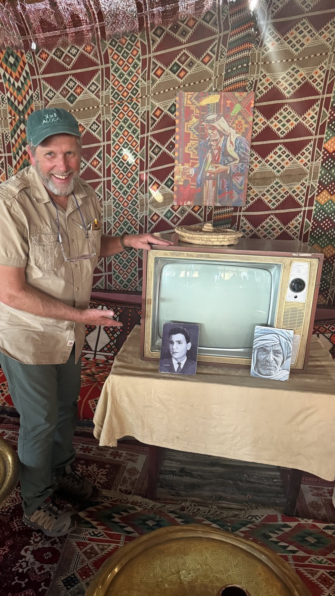 On the right is the first television set to find its way into Luxor (Thebes), Egypt. On the left (with the green hat) is another bit of technology that appeared that same decade.