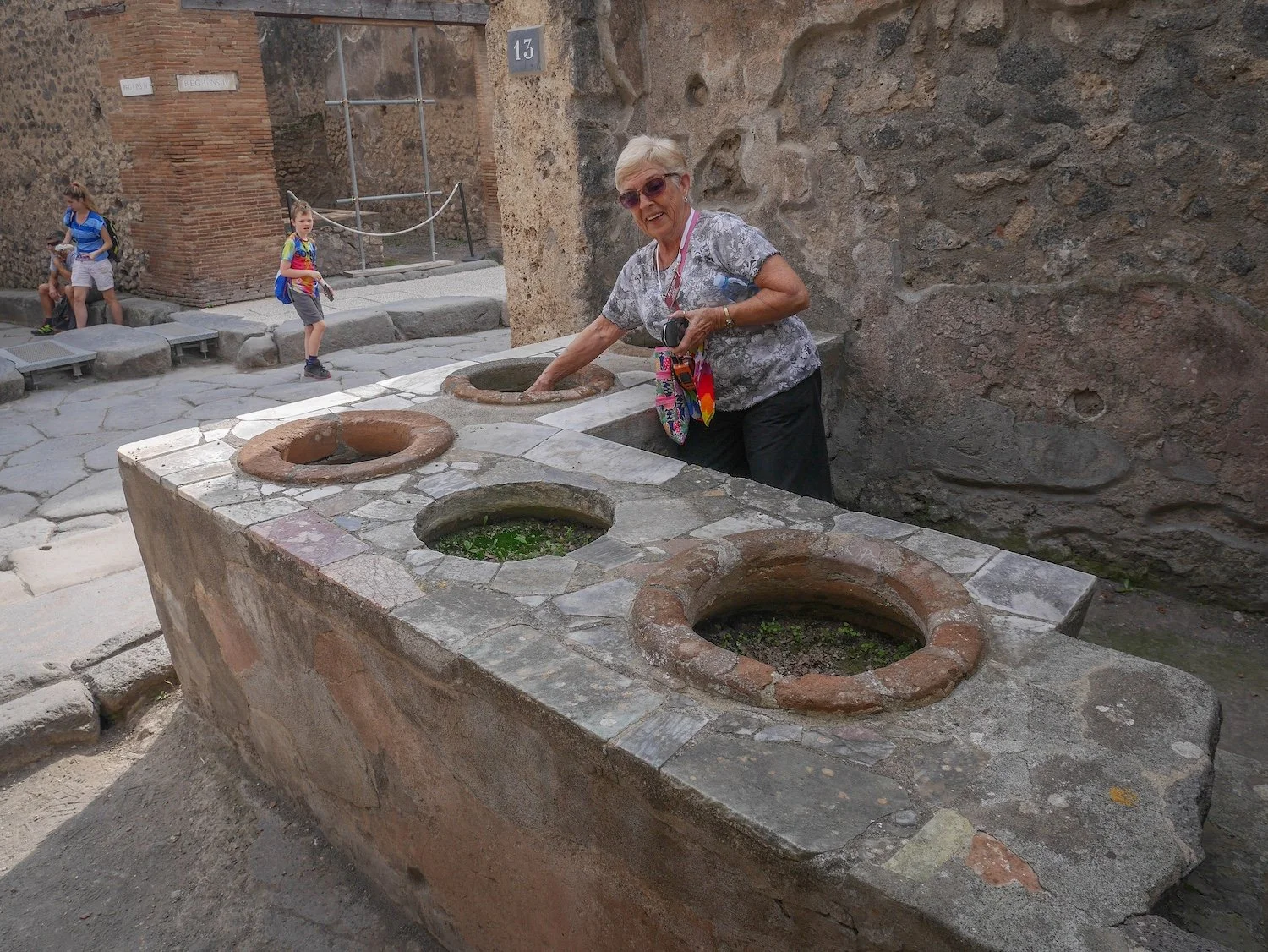 In urban areas of the New Testament world, many residential apartments (insulae) lacked cooking facilities. Meals could purchased for take-away in places like this—and incidentally, the more well-to-do residents scorned the thermopolia. Scoff if you will, McDonald’s-haters; more than 150 soup counters were found here, suggesting that take-away was a lively industry.