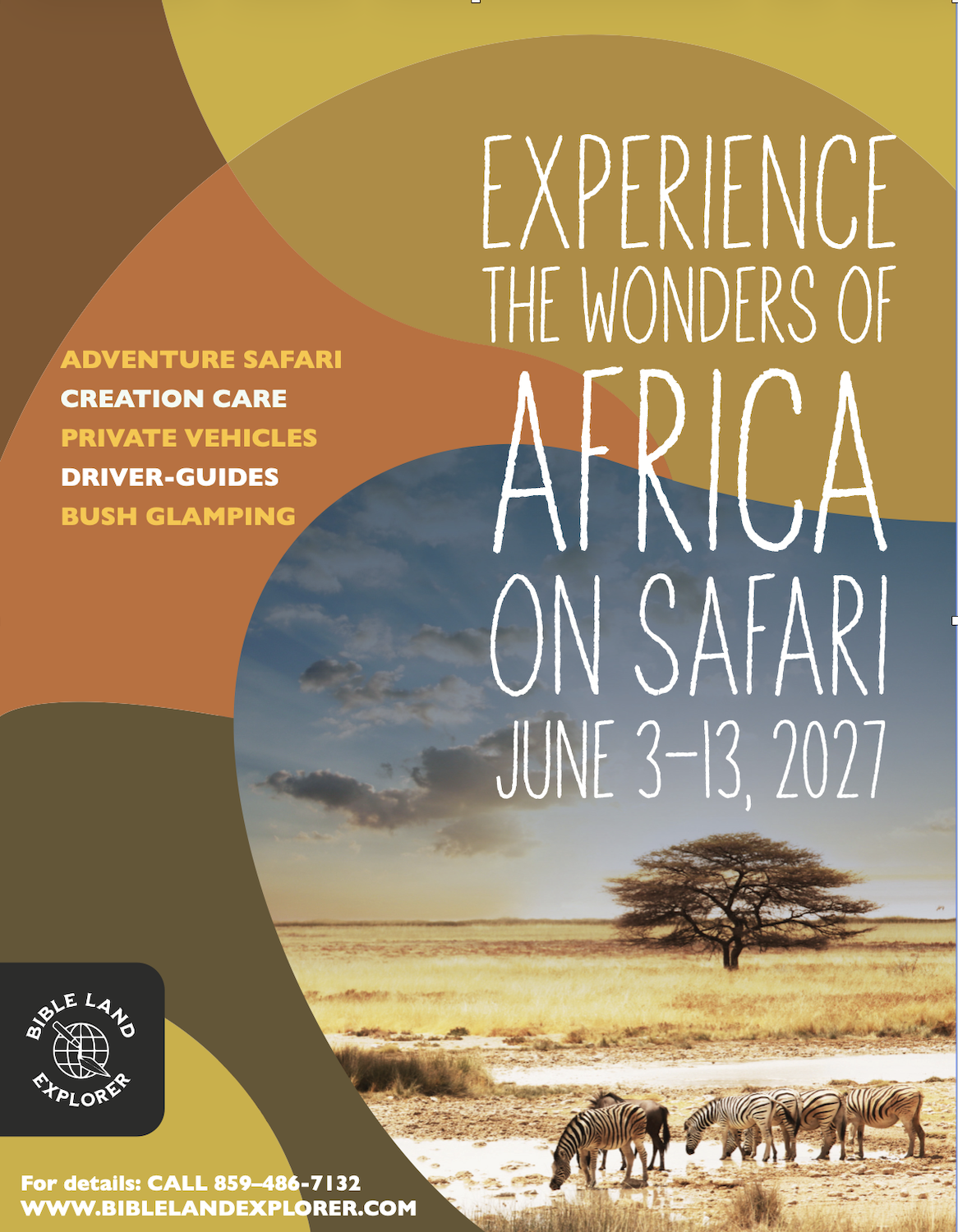 Bible Land Explorers are headed back to Tanzania June 3-13, 2027. Lake Victoria, the Serengeti, and Ngorongoro Crater, are on our agenda as we photo-hunt black-and-white zebras, colorful birds, and everything in-between. We are now receiving early registrations for this exclusive small-group adventure. See the link here for brochure and more information or email us at BibleLandExplorer@gmail.com.