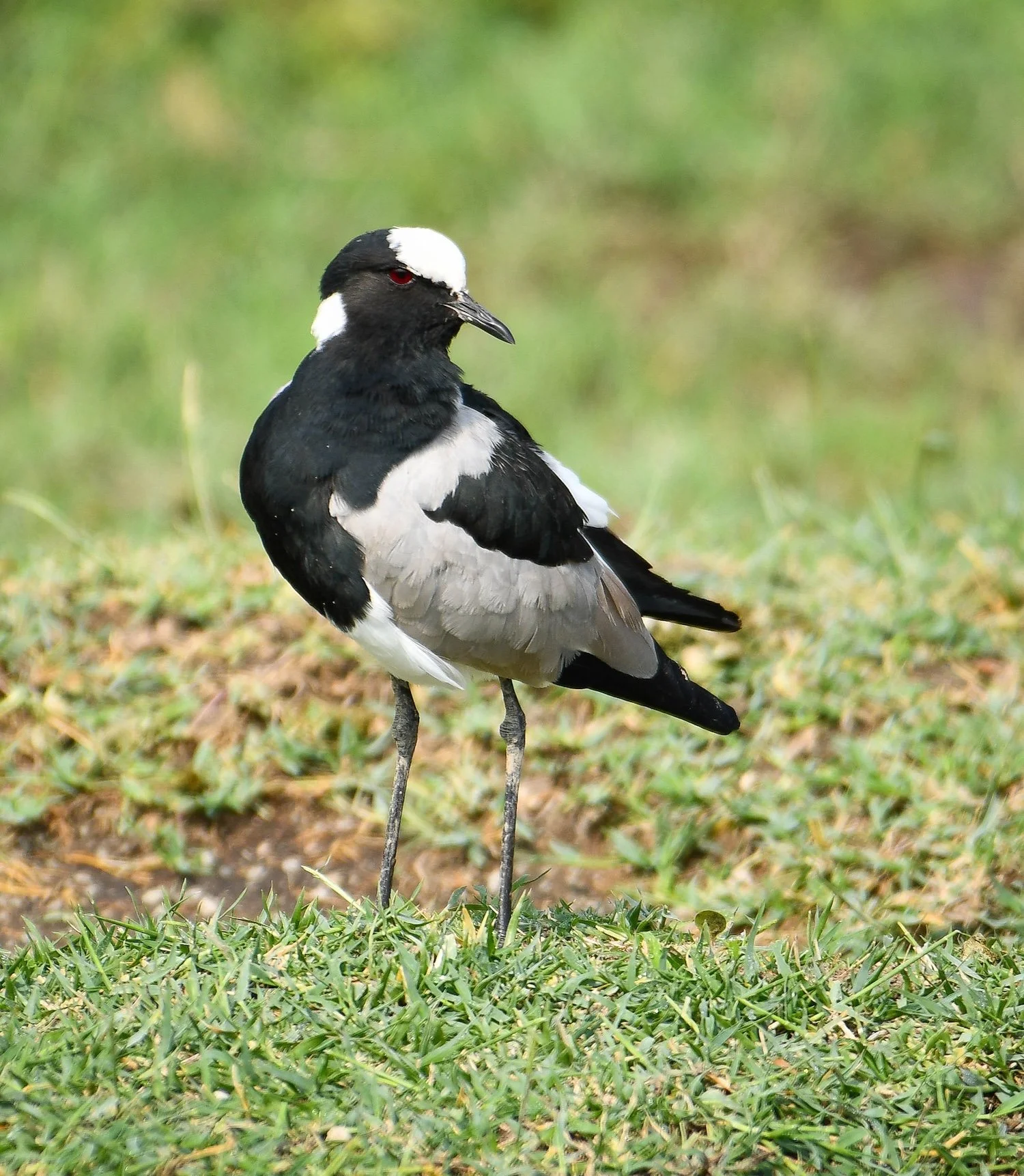 The bird pictured above is a Blacksmith lapwing (Vanellus armatus), a striking, long-legged wader found throughout Southern and East Africa. Look for it in open grasslands near water.